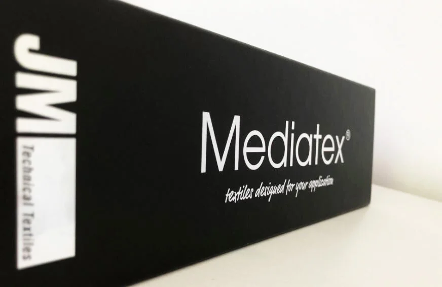 MEDIATEX® SilverBloc FR ist die neue Blockout Qualität von Junkers und Müllers für vielseitige Anwendungen. Ob als Roll Up, Banner oder auch freihängend als Rollo. Die Ware überzeugt durch ihr Spann- und Hängeverhalten in einwandfreier Planlage.